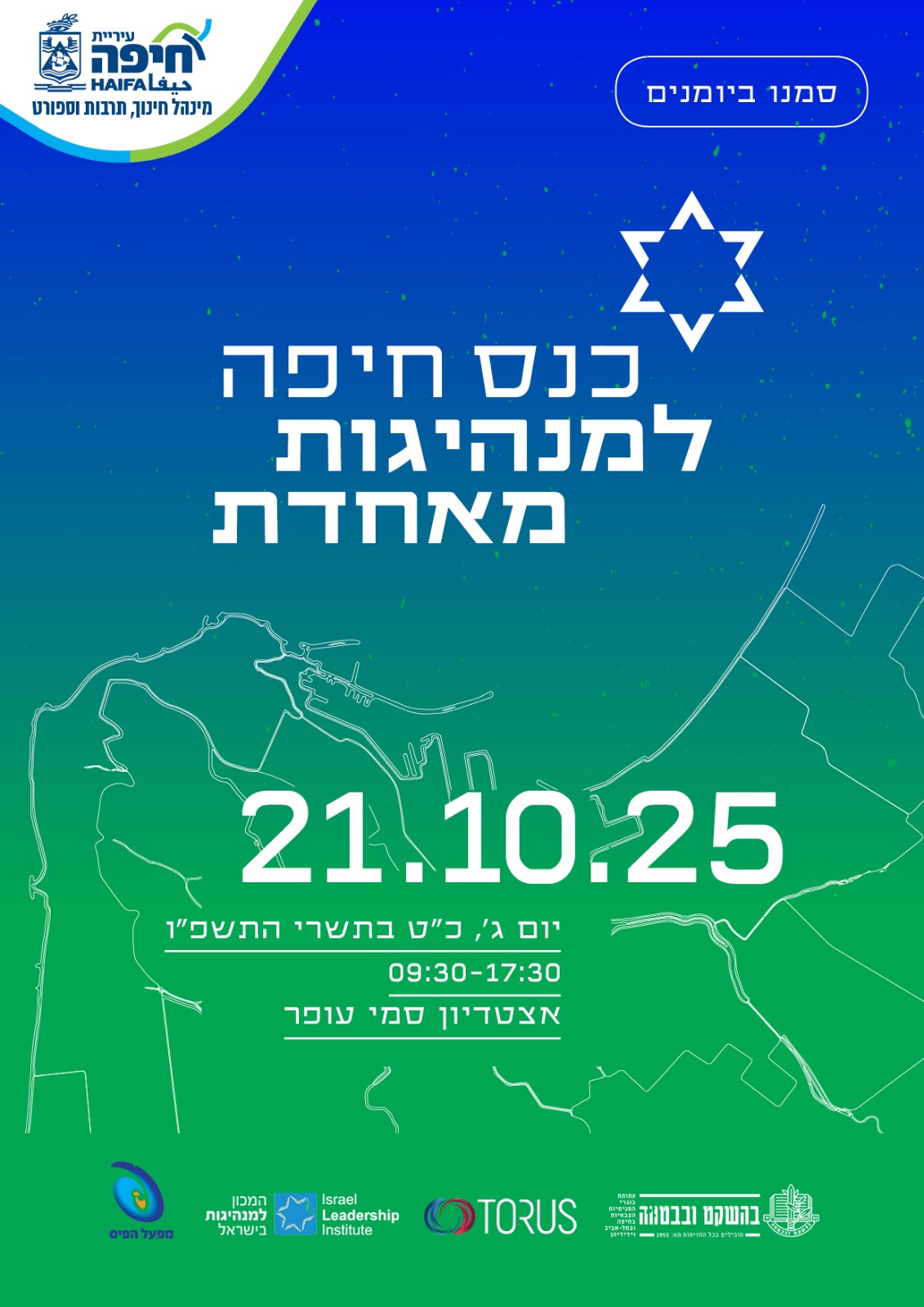 עיריית חיפה בשיתוף עם עמותת הפנימיות הצבאיות, קבוצת טורוס והמכון למנהיגות בישראל שמחים להזמין אותך לכנס המנהיגות השנתי בסימן - מנהיגות מאחדת.